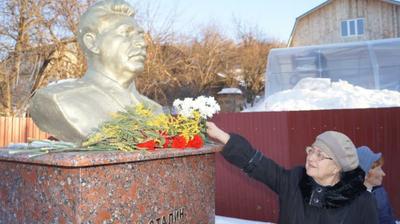 После обеда к памятнику Сталину пришли с цветами уже активисты общественной организации «Дети войны». Для них имя Сталина тоже значит многое.