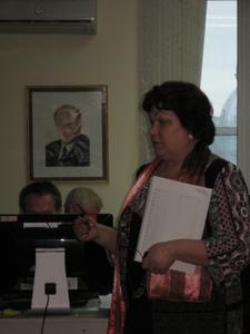 В прениях по докладам выступила Т.В. Базанова, помощник депутата Законодательного Собрания Пермского края, руководителя фракции КПРФ Г.Э. Кузьмицкого. Она обратила внимание на то, что, конечно, немедленного результата не будет – просто так никто ничего не даст, работа предстоит большая и трудная. А залог её успеха – во взаимодействии с другими общественными организациями, с Советами ветеранов. Об уже имеющемся опыте работы рассказали В.И. Костарев из Краснокамска и В.В. Иванов из Коми-округа. Е.Р. Желобович, депутат Законодательного Собрания Пермского края обратил внимание на то, что в Госдуме готовится закон только по детям войны – сиротам, но на уровне администраций ещё не имеют понятия как по нему работать.