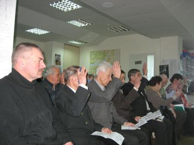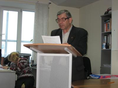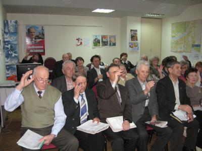По Уставу организации, порядку регистрации выступил М.В. Анисимов. Основные моменты доклада, на которых он остановился, это: кто есть «Дети войны», для чего создана организация, обязанности организации, право вступления в неё, съезд – как высший руководящий орган, и многие другие положения Устава.