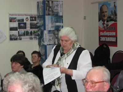 «О нас говорят, что мы уже одуванчики, и нам пора сидеть дома, - сказала в своём выступлении З.Н. Владыкина из Добрянского района, - а ведь после войны именно мы восстанавливали страну! А кто восстанавливал коммунистическую партию в лихие 90-е? Мы первые стали добиваться отнятых социальных благ. Если мы поднимем «пласт» детей войны - большинство из них будут нашими сторонниками и помощниками! Для этого нужно скорее организовываться!»