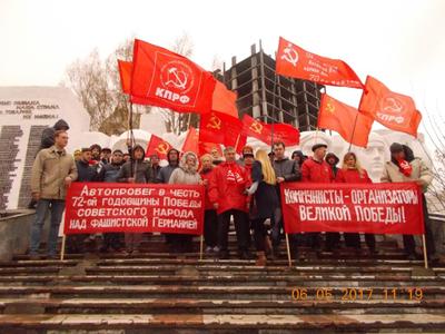 6 мая, несмотря на моросящий холодный дождь, сделавший весь город серым, коммунисты выехали на автопробег по улицам Перми с посещением памятных мест – мест боевой и трудовой славы пермяков. И город сразу расцвёл красными, развевающимися по ветру флагами – знамёнами Победы, Советского Союза, КПРФ.