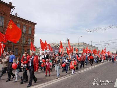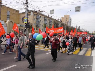Около 400 коммунистов, комсомольцев и сторонников партии прошли краснознамёнными колоннами по главным улицам Липецка: Космонавтов, Гагарина, Зегеля, Петровский спуск. В руках демонстрантов были красные флаги и шары, а также плакаты с лозунгами.