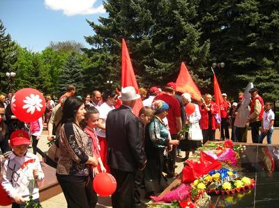 Дойдя до памятника В.И. Ленину, колонна коммунистов остановилась, чтобы отдать дать уважения вождю мирового пролетариата и возложить цветы. Здесь к собравшимся с поздравлениями обратился первый секретарь Кабардино-Балкарского рескома КПРФ Борис Паштов. А затем теми же стройными рядами коммунисты прошли к Вечному огню, чтобы почтить память всех, кто ковал Великую Победу.