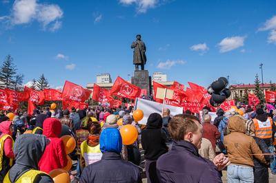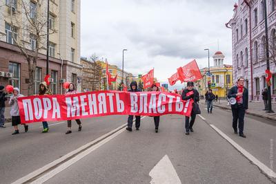 К первомайским колоннам краевого комитета КПРФ присоединились члены краевого отделения комсомола, организаций «Дети войны» и «Надежда России», организации «Трезвая Сибирь», активисты за сохранение Зелёной Рощи. Вместе с коммунистами на акцию свои требования пришли выразить экологи, активисты-дальнобойщики и дольщики, обманутые строительной компанией «Реставрация».