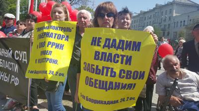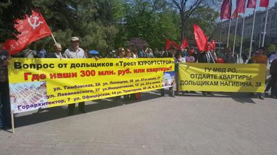 Представитель обманутых дольщиков ЖК «Европейский» Белоножко В.Л. отметил в своем выступлении, что в Советское время, участвуя в первомайских демонстрациях, он чувствовал, прежде всего, уверенность в своем будущем: что закончив школу он поступит в институт, получив диплом, гарантированное рабочее место и дальнейшая его судьба будет завесить от его способностей головы и трудовых рук, а нынешние власти на примере обманутых дольщиков отняли не только деньги, а отняли, прежде всего, веру в завтрашний день. Так молодые семьи не могут заводить детей, так как платят за съемное жилье и неподъемную ипотеку. И таких примеров много.