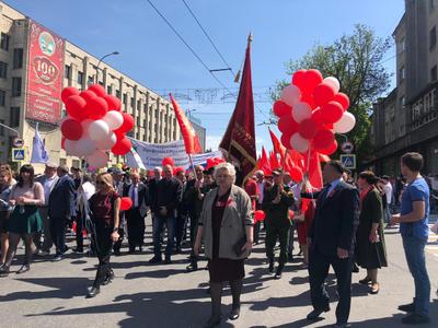 По пути следования к коммунистам КПРФ присоединились остальные участники праздника: представители общественных, молодежных, женских профсоюзных организаций. Завершилось шествие митингом на Театральной площади г. Владикавказа.