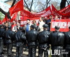 Прошла почти неделя со дня Первомая, но во Владивостоке его то и дело обсуждают до сих пор, пишет сайт Vl.ru. Причем говорят горожане не об "официальной" праздничной колонне, организованной властями Приморья, а о той, которую два с половиной часа держали в двойном кольце оцепления, как будто люди с красными флагами и неудобными лозунгами в чем-то провинились перед власть имущими. Если верить представителям КПРФ, сегодня встретившимся с журналистами Владивостока, виноваты эти люди были только в одном: они хотели идти в колонне КПРФ и имели на это полное право.