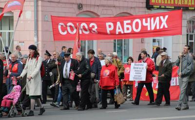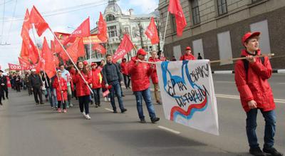 Над краснознаменной колонной витало не только праздничное настроение, но и дух протеста против бездарной политики российских и региональных властей.