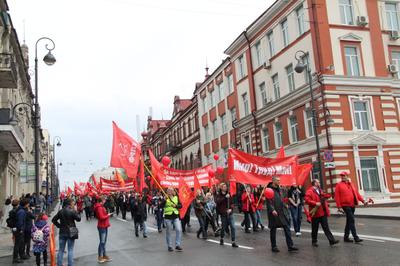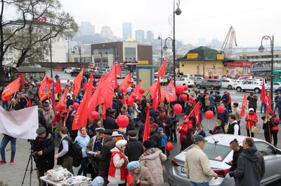 В городе Владивостоке 1 мая прошла массовая демонстрация коммунистов и их сторонников. Помимо жителей и гостей Владивостока для участия в демонстрации прибыли делегации из Уссурийска, Артема и Надеждинского райна.
