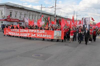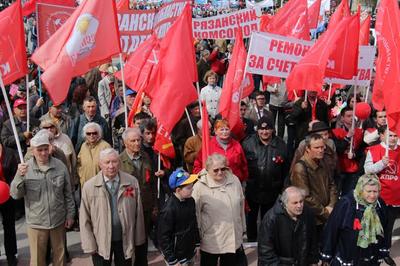 1 Мая в городе Рязани под знамёнами КПРФ, ЛКСМ РФ, «Дети войны», ВЖС «Надежда России», «Русский лад» по центральной улице — Первомайскому проспекту прошла красная колонна под лозунгами: «Правительство – в отставку!», «Требуем хороших дорог!», "Нет - платному образованию!", "Нет - разграблению муниципальной собственности!". Возглавляла её молодёжная группа с транспарантом "Наше дело правое! Победа будет за нами!", которая скандировала по ходу движения: "Ленин! Партия! Комсомол!", "Наша Родина – СССР!".