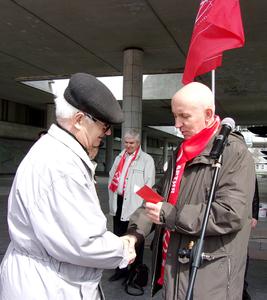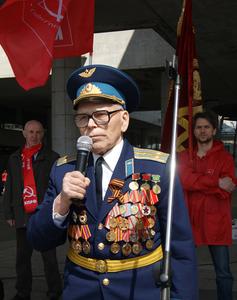 Перед началом демонстрации ветерану войны, известному исследователю биографии В.И. Ленина, полковнику в отставке Жоресу Трофимову была вручена медаль ЦК КПРФ «70 лет Победы в Великой Отечественной войне».