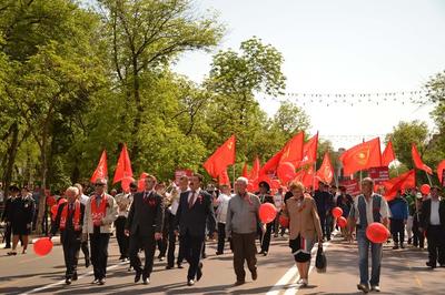 Колонна коммунистов и сочувствующих с флагами КПРФ, СССР, ЛКСМ и множеством красных шариков прошла по центральным улицам города.