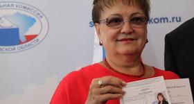 Глава облизбиркома Владимир Писарюк вручил ей удостоверение.