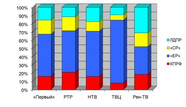 | Телеканал | КПРФ | «ЕР» | «СР» | ЛДПР | |