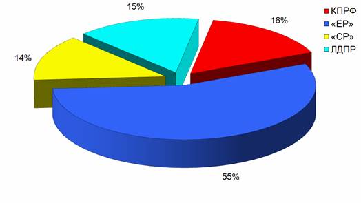 В совокупности больше всего телеэфира было предоставлено «Единой России» (55%). КПРФ предоставили 16% (или 11 мин 51 сек), что почти в четыре раза меньше, чем «Единой России». (График 1)