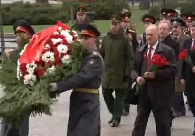 В: И сегодня же ветераны собрались в Москве на форум, посвященный защитникам городов-героев. Перед его открытием они возложили цветы к Могиле Неизвестного Солдата и стеле у Кремлевской стены. Участники встречи проводят российскую акцию в школах под названием "Знамя нашей победы". О том, как важно защищать память о войне от тех, кто пытается переписать историю, говорили и сами фронтовики, и лидер коммунистов. Он и обратился к ветеранам.