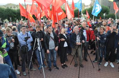 Свыше трехсот человек приняли участие в состоявшемся 15 августа 2019 года митинге на площади Ленина, организованном Санкт-Петербургским отделением КПРФ в рамках Всероссийской акции протеста «За честные и чистые выборы! За власть закона и социальные права граждан!».