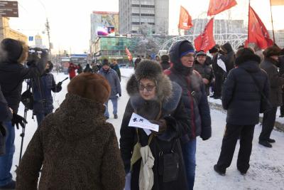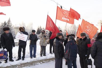 С представителем обкома КПРФ солидарны все участники митинга, среди которых секретарь Новосибирского обкома партии Алексей Русаков, депутат Совета депутатов города Новосибирска трех созывов Егор Тюкалов и другие: