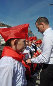 После завершения выступлений пионеры торжественно произнесли клятву, итогом которой стал самый ответственный момент – ребятам повязали красные галстуки и вручили книги о пионерах-героях, которые будут являться примером для вступивших в ряды пионерской организации.