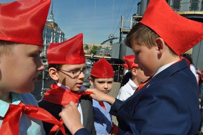 19 мая, в День пионерии, десятки юных ленинградцев собрались на легендарном крейсере “Аврора”, чтобы принять участие в торжественной линейке, посвященной дню создания пионерской организации.