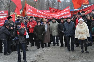 Свыше пяти сотен человек, невзирая на промозглую погоду и мокрый снег с дождем, собрал организованный Санкт-Петербургским городским отделением КПРФ митинг против антидемократических поправок в региональный закон о митингах, шествиях и пикетированиях.