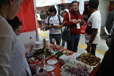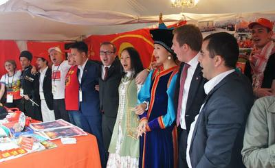 Пришедшие на презентацию гости с удовольствием фотографировались с представителями различных народов России, угощались солеными огурцами, картошкой в мундире и салом.
