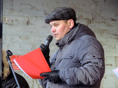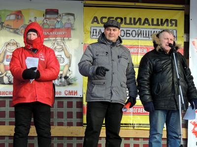 На митинге выступили представитель сообщества дальнобойщиков Юрий Павлов и депутаты Омского городского Совета от КПРФ Иван Федин и Геннадий Дроздов.