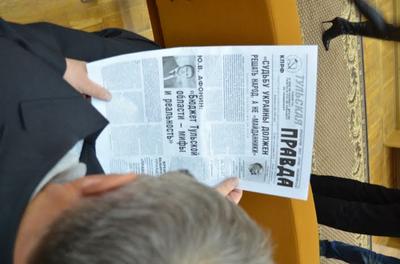 В субботу, 7 декабря в Туле состоялось заседание Бюро и пленум Комитета Тульского областного отделения КПРФ. Пока заседало Бюро, прибывающие члены обкома с интересом знакомились в новым выпуском «Тульской правды», которая теперь печатается в более высоком качестве. Но ещё большее внимание актива вызвала статья первого секретаря обкома, депутата Государственной Думы Ю.В.Афонина «Бюджет Тульской области – мифы и реальность», в которой дан развёрнутый, системный анализ главного финансового документа региона на 2014 и плановый период 2015-2016 гг.