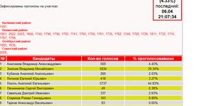 По данным протоколов с 4,33% УИК А.Е.Локоть побеждает с результатом 44,83%. У единоросса В.М.Знаткова - 39,34%