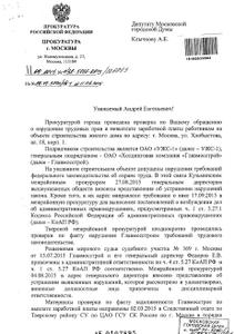 Кроме того, как говорится в письме, генеральному директору «УЖС-1» (дочернее предприятие «Главмосстроя») внесено представление об устранении нарушений трудового законодательства, которое «рассмотрено и удовлетворено, виновные лица привлечены к дисциплинарной ответственности».