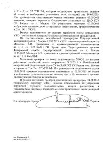Как отмечается в письме за подписью и.о. прокурора города Максима Тарасова, прокуратурой неоднократно проводились проверки по факту нарушения «Главмосстроем» требований трудового законодательства, однако Следственный отдел по Тверскому району СУ по ЦАО Москвы принимал решения об отказе в возбуждении уголовного дела. 3 сентября последнее решение об отказе было отменено, а по результатам проверки 7 сентября возбуждено уголовное дело.