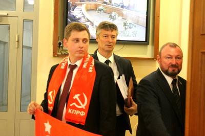 28 апреля перед заседанием гордумы Екатеринбурга коммунисты провели импровизированный пикет в здании администрации Екатеринбурга. КПРФ призывала депутатов поддержать положение "О знамени победы", которое будет рассматриваться сегодня по инициативе фракции КПРФ.