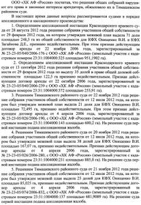 2. Определением апелляционной инстанции Краснодарского краевого суда от 13 сентября 2012 года решение собрания участников общей собственности от 29 февраля 2012 года по выделу 35 долей в праве общей долевой собственности площадью 122,5 га признано недействительным. Признан действующим договор аренды от 22 октября 2006 года, зарегистрированный за № 23-23-05/040/2006-239 с ООО «ХК АФ «Россия» (земельный участок с кадастровым номером 23:31:1004000:372 площадью 253,91 га).