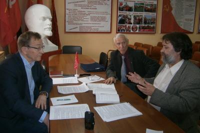 На фото: Любопытную инициативу обсуждают В.Г. Поздняков, К.О. Шлямов и Б.П. Максимов.
