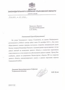 Депутаты Законодательного Собрания области от КПРФ привлекли внимание к событиям своими выступлениями в Законодательном Собрании, а секретарь обкома партии В. Кузин по поручению фракции направил соответствующий запрос Министру обороны России, генералу Армии С. Шойгу. Активные протесты привели к тому, что мемориальная доска была демонтирована силами офицеров вч/42731.