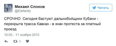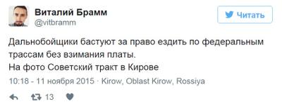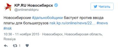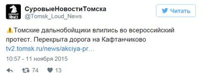 По данным агентства "Интерфакс", в Липецке в акции участвовало около 30 фур, в Калуге около 40, в Ростовской области около 50, в Тюмени около 60, на Ставрополье - около 100, во владимирском Покрове - 25, в Екатеринбурге - около 50. В Челябинске, где в акции приняли участие до 100 водителей на фурах и легковых авто, полиция задержала двух участников одиночных пикетов, сообщили организаторы. Накануне правительство снизило сбор с тяжелых фур с 3,06 руб. до 1,53 руб. за километр пути. Однако с марта 2016 года стоимость проезда снова повысится. Дальнобойщики утверждают, что это грозит резким ростом цен в магазинах, а часть перевозчиков потеряют работу.