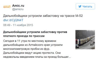 Напомним, ранее этой осенью российские перевозчики попросили правительство ввести мораторий на взимание платы с грузовиков, пригрозив массовыми забастовками дальнобойщиков.