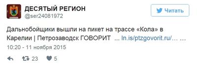 В пикете на трассе "Кола" в Карелии тоже приняли участие около 50 грузовиков, сообщает "Петрозаводск говорит".