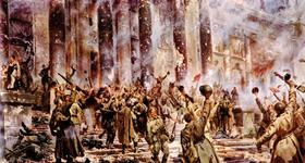 «2 мая, в весенний солнечный день я делал этюд с Рейхстага, — будет потом вспоминать Пётр Александрович. — Только что над куполом его взвился алый стяг Победы, водружённый бойцами батальона капитана Самсонова — героями-разведчиками Михаилом Егоровым и Мелитоном Кантария.