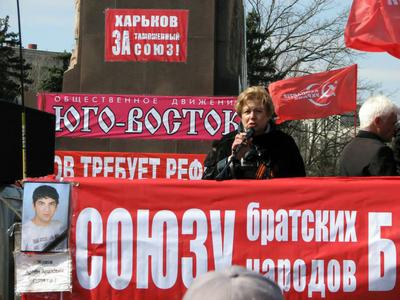 1 апреля коммунисты пикетировали офис Национального совета по вопросам телевидения и радиовещания в Харьковской области. Именно это ведомство подало иск в Киевский административный суд о приостановке трансляции российских телеканалов на Украине. И добилось своего. А поскольку достучаться до украинских телечиновников практически невозможно, протестующие прошествовали по центральным улицам под лозунгами: «Харьков — русский город!», «Мы хотим слышать Россию! Мы хотим видеть Россию!», «Требуем вернуть трансляцию российских каналов!», «Нет цензуре!».