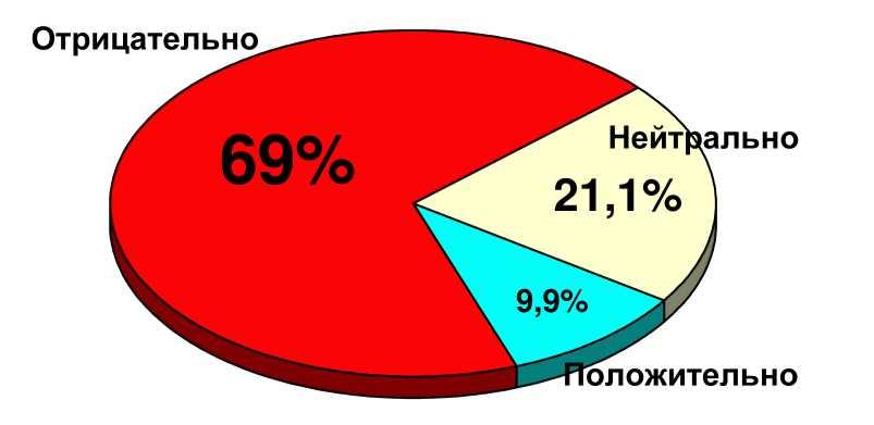 Осуществления программы десталинизации и десоветизации народ России не хочет потому, что она (программа) ему не нравится. В целом и в частностях: средняя оценка программы (по и-балльной шкале от -5 до +5) равна -2,85! Если же разделить данные оценки на отрицательные (-5, -4, -3)> нейтральные (-2, -1, 0, +1, +2) и положительные (+3, +4, +5), то общая оценка становится совершенно ясна: она отрицательная - см. рисунок ниже.