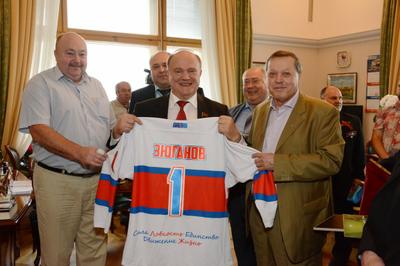 В числе многочисленных сувениров с нашей стороны был и тульский самовар, который Президент Федерации хоккея следж г.Москвы А.Л. Егоров вручил американцам вместе с символической футболкой № 2 для мэра Воорхеса, тем самым как бы подчеркнув предопределённость наших спортивных отношений с грозными соперниками, поскольку футболка № 1 принадлежит России – 26 июня она была подарена на Юбилей Председателю ЦК КПРФ Геннадию Андреевичу Зюганову!