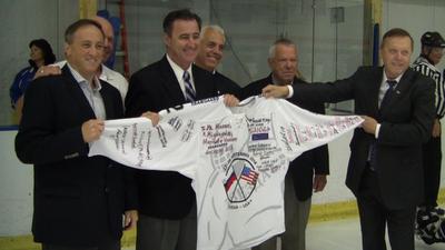 Глаза боятся, да руки делают! Три шайбы, запущенные нашими клюшками поразили ворота американцев в первой игре! Одержав первую победу 3:0, наши ребята усиленно готовились к реваншу заокеанских соперников и не напрасно – вторую игру приехал смотреть сенатор Конгресса США от штата Нью Джерси, мэр города и звезда НХЛ семидесятых Боб Келли!