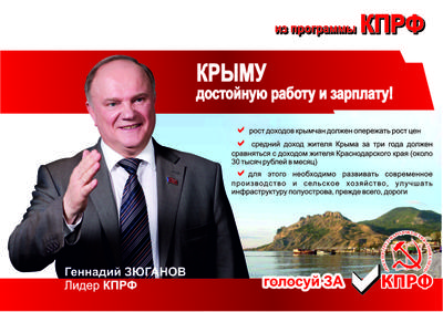 Предлагаем вашему вниманию подборку агитационных материалов Крымского рескома КПРФ на выборах 14 сентября 2014 года.