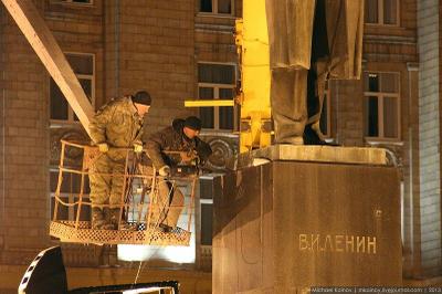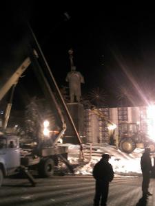 Сегодня ночью в Белгороде на центральной площади по приказу мэрии демонтировали памятник вождю социалистической революции В.И. Ленину. Ночью это было сделано неспроста: никаких разрешений на демонтаж не было и быть не могло, единственным документом, сглаживающим беззаконье, могло стать решение городского совета, принятое 12 марта, но оно еще не успело вступить в силу.