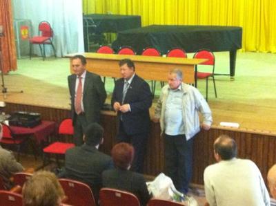 11 сентября заместитель председателя ЦК КПРФ, председатель Комитета по природным ресурсам, природопользованию и экологии Госдумы, академик РАН Владимир Кашин и первый секретарь МК КПРФ, депутат Госдумы Николай Васильев посетили подмосковный наукоград Пущино, где в помещении зрительного зала МБОУ ДОД Детская музыкальная школа им. А.А. Алябьева прошла встреча с жителями города.