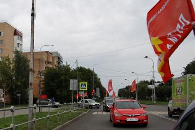 Два десятка автомобилей с партийными флагами, знамёнами Победы и лозунгами: «КПРФ за трудовой народ! За достойную зарплату в родном городе!», «КПРФ против жуликов и воров!», «КПРФ за достойную зарплату врачей и учителей!», «За народовластие и социализм!» стартовали от Люберецкого ГК КПРФ и проследовали по центральным улицам Люберец, посёлков Томилино, Красково и Коренёво.