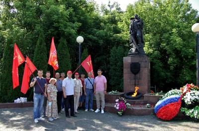 Группа коммунистов и сторонников КПРФ, осенив себя флагом Советского Союза, приняли в этой акции участие. Вместе с горожанами мы возложили алые гвоздики к подножью мемориала.
