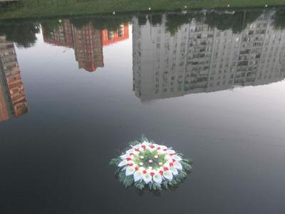 22 июня, как всегда, венок от Ленинского отделения организации «Детей войны» красиво царил над зеркальной гладью воды.