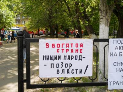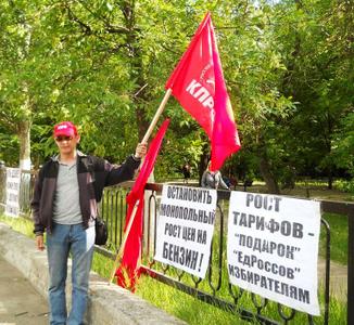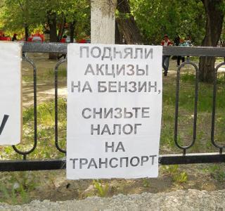 Вдоль дороги стояли коммунисты с плакатами против роста стоимости цены на топливо. Особенностью этих плакатов было обращение к водителям, если они тоже против роста цен на топливо, то они должны посигналить. Поэтому абсолютное большинство водителей поддержало акцию протеста коммунистов, и в воздухе звучал постоянный гул клаксонов, проезжающих машин. Думается, что на следующей акции протеста будет вывешено приглашение работающих граждан и водителей на митинг или другую протестную акцию, если правительство не понизит цены.